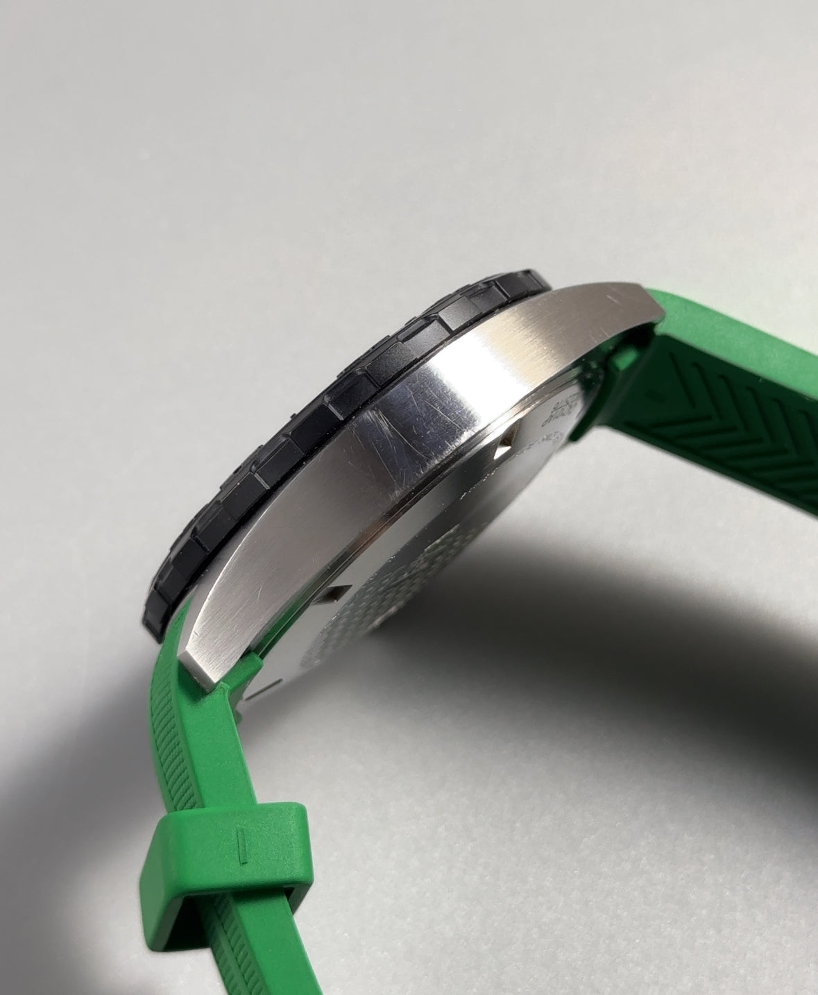 The watch is performing perfectly. There are minor scratches and marks to the case and buckle, consistent with careful use. Please refer to the photographs for an accurate representation of the condition.